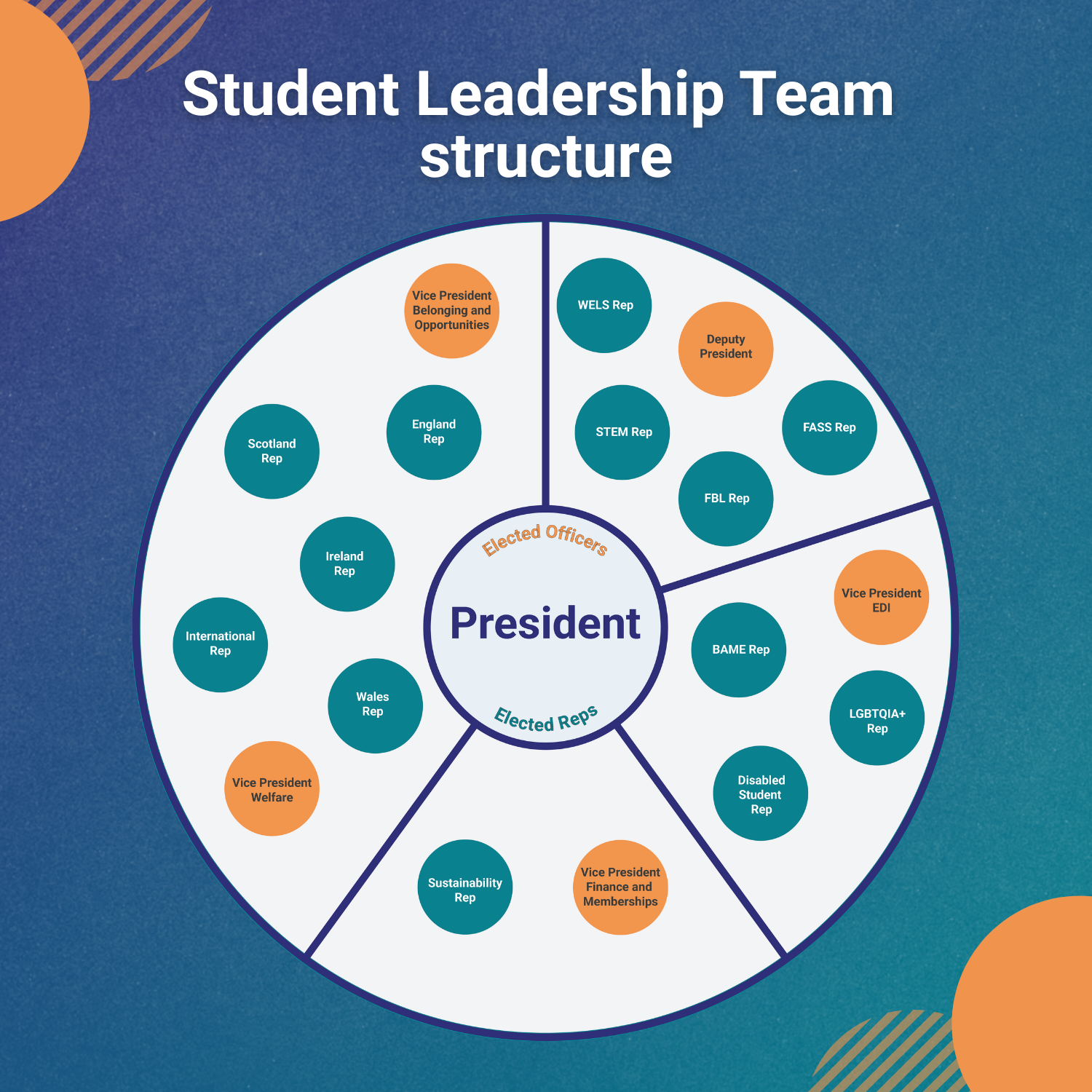 The Student Leadership Team (SLT) is made up of two teams: Elected Officers and Elected Representatives.